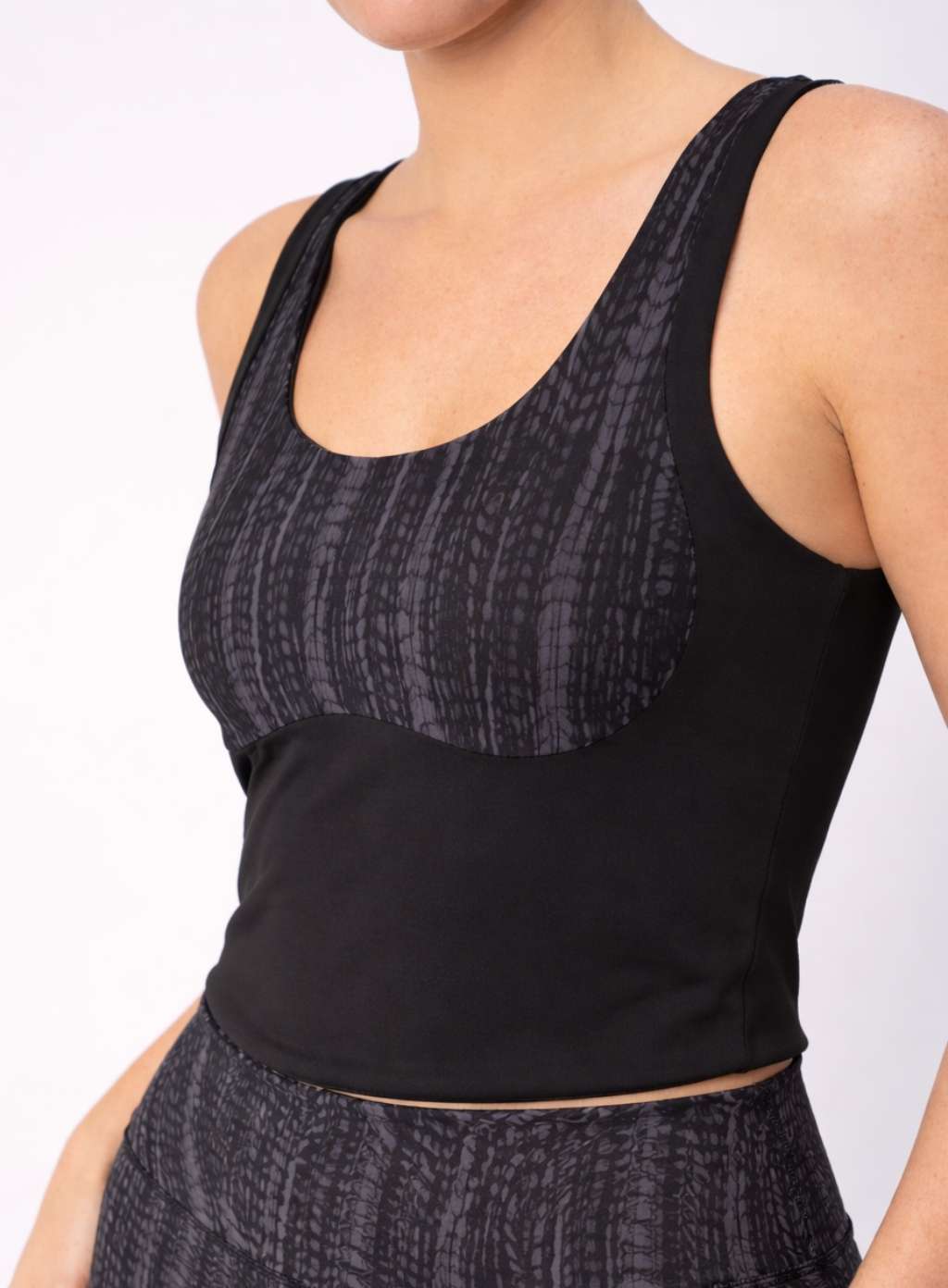 Confeccionado en Polisup Liso y recortes en Tejido de Supplex con estampado exclusivo de la marca. Diseño de breteles anchos, con